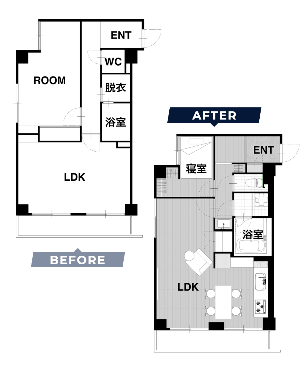 オプション(追加料金)となりますが、家具・家電の設置位置やサイズによってリノベーションのプランも変わることが多いので、併せてご相談されるお客様も多くいらっしゃいます。