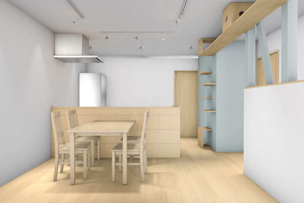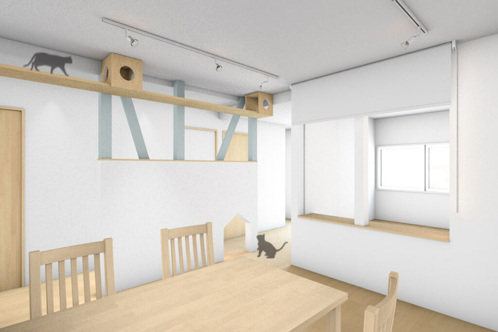 猫ちゃんたちもご家族の一員。M様とご両親のお家を行き来できたり、住まい全体がまるで“キャットウォーク”みたいになれば素敵だなと思い、そのイメージも踏まえてプランを考えました。