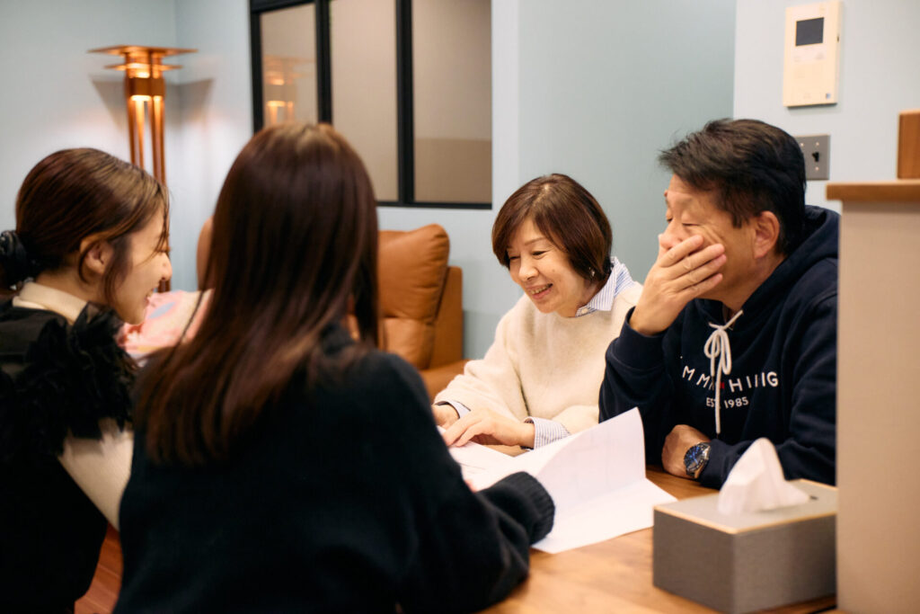 K様:床のサンプルも見ている時期だったので、壁紙のサンプルと重ねながら、たくさん話しましたね。