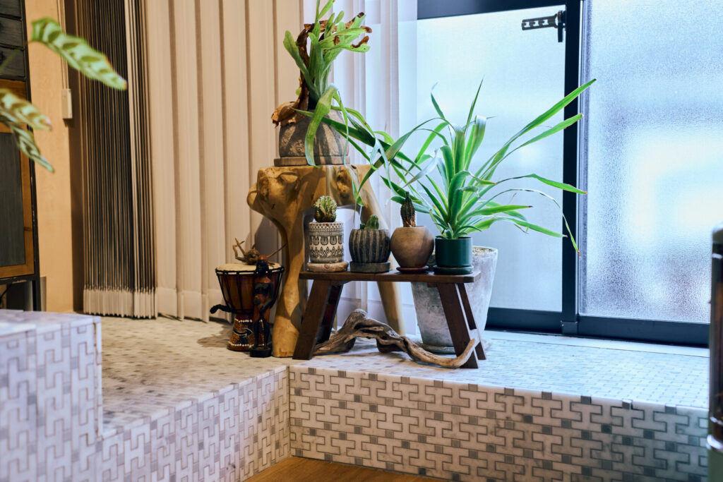 平田タイルのショールームで一目惚れした「モザイクタイル」や、憧れの土壁の質感にできる限り近づけた「漆喰の壁」。自分の感性に向き合い、一つひとつ吟味して選んでいった。