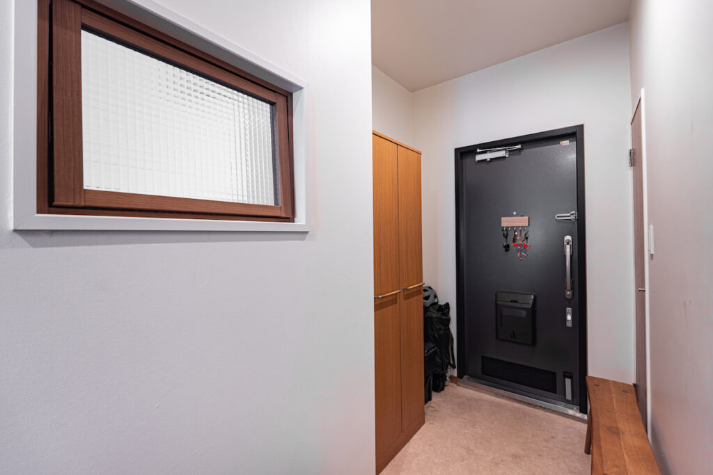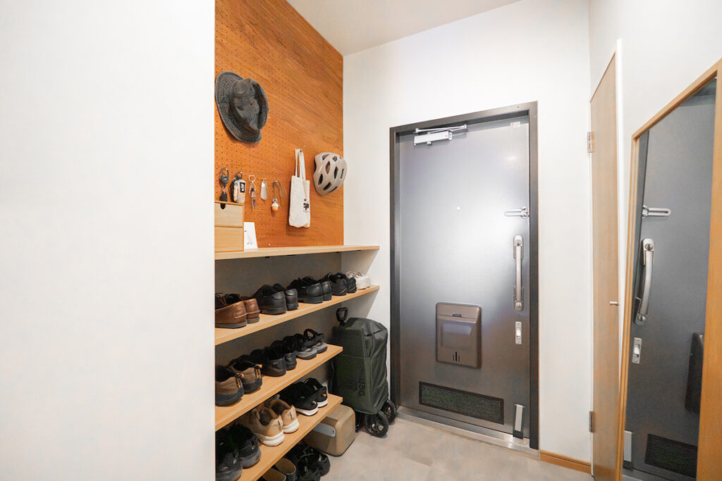 玄関框には、リアルな木目柄のダイノックシートを採用。もともとの框をそのまま活かしつつ、見た目の印象を大きく変える、コストを抑えたリメイクです。