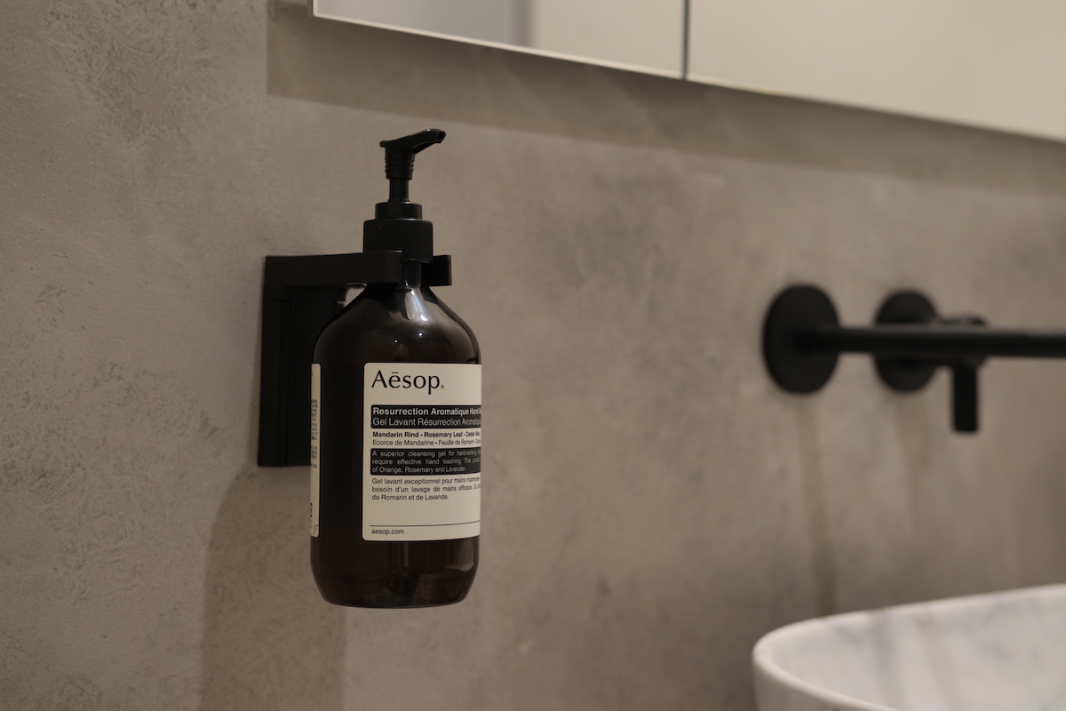 このボトルホルダーは、Aēsop製品のサイズとデザインに合わせて設計された専用ホルダーです。