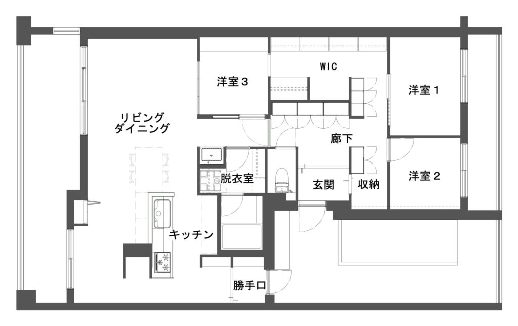 廊下やキッチンまわりを回遊できるように整えました。移動が短くなり、料理や片付けも効率的に。動線がつながったことで行き止まりがなくなり、家事のストレスが軽減されます。ちょっとした移動のしやすさが、暮らし全体の快適さにつながっています。
