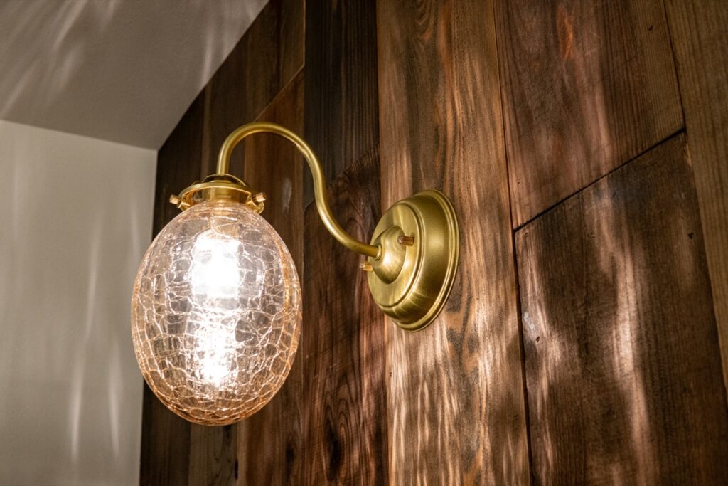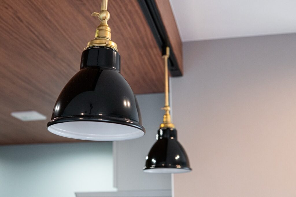 玄関、キッチン前、洗面台それぞれに、施主様のお気に入りの照明を設置。