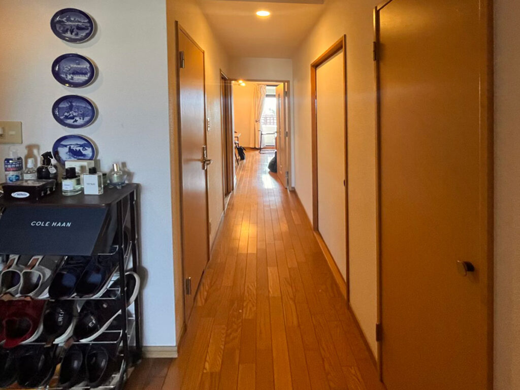 廊下やWICに一面収納を設け、片付けやすく、モノが溢れない暮らしを実現。収納場所が明確になったことで「置き場に迷わない」安心感が生まれました。見せる収納と隠す収納を組み合わせ、すっきりとした空間を保ちながら、使いやすさも実現しています。