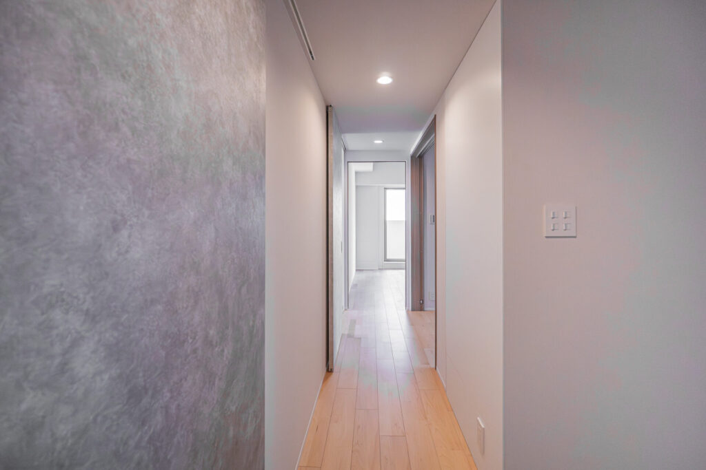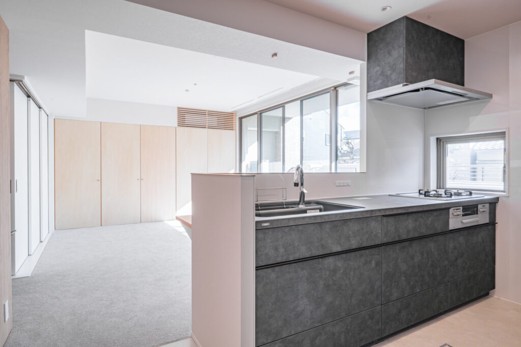 LDKは通路幅をしっかり確保し、収納を壁面にまとめることで、家具の配置に左右されにくい動線計画としています。