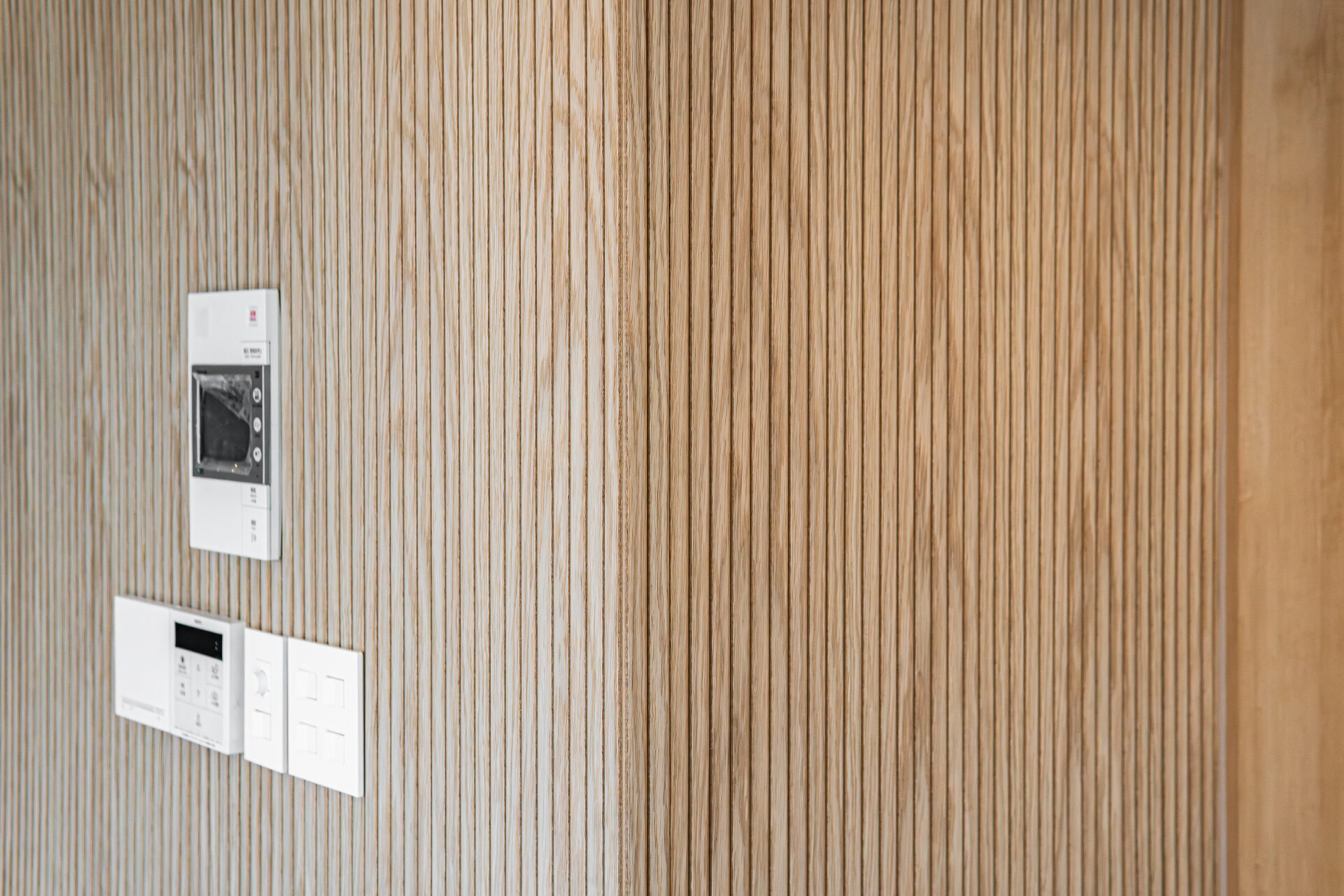 縦のラインが入ることで、空間全体にリズムが生まれ、装飾ではない空間のバランスを整えるための意匠です。